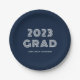 Modern blue 2023 graduation typography paper plates. Trendy, simple white typography on blue background. Perfect for the graduation party.