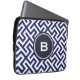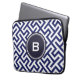 Modern blue abstract geometric patterns monogram laptop sleeve