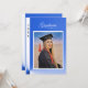 A unique and modern card with a modern blue, abstract color scheme. Similar blue background on the back of the card containing invitation details. The photo and all text is easily changed with the template. The "Graduate" text, however, is actually a graphic image but is editable. Suitable for a high school or college graduation. Selecting “Personalize this design” offers you several edit options to easily change the text (wording, plus type font, color, size, position) and to possibly edit the design elements. You may also want to scroll down to the section “Transfer design to a product” for a few suggestions about other items this design can be used on.