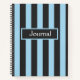 Modern pastel blue and black bold stripe notebook with graph paper insert and customizable title.