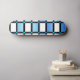 A trendy A trendy square chequered tiled pattern with modern black, white, and blue gradient tiles, giving it a stained glass effect.