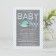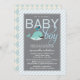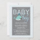 Modern Blue Baby Shower Boy Little Whale Moustache Invitation