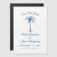 Ask your guests to save your wedding date with this simply elegant design featuring modern script, blue text and an artistic palm tree. Customize it with your wedding date, names and location.
