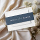 Elegant and sophisticated, this wedding belly band features a rich dark blue background complemented by delicate blush pink text. Perfectly suited for a modern yet timeless aesthetic, the soft blush pink details provide a gentle contrast against the deep blue, creating a refined, romantic look. Ideal for adding a touch of elegance to your wedding invitations, this belly band ties your stationery suite together beautifully, making a lasting impression for your special day. Customize it with names