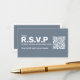 Set a sophisticated, modern tone for your celebration with this blue RSVP enclosure card, thoughtfully designed to combine effortless function with chic, minimalist style. The sleek slate background showcases bold, oversized white typography for standout clarity and a striking visual appeal, while the simple, clean layout provides ample space for your custom QR code—making online replies quick and secure.