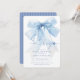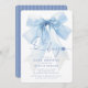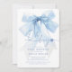 Celebrate the upcoming arrival of your little boy with our charming blue bow baby shower invitation. This delightful design features a coquette bow that adds a touch of elegance and whimsy, perfectly capturing the joy of this special occasion. Make your baby shower unforgettable with this adorable and stylish invitation that reflects your love and anticipation for your new bundle of joy.