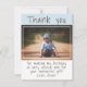 Modern Blue Boy Photo Birthday Thank you Card. Modern thank you card for kids with a blue and white background, thank you text and your message and name. Personalize with your favourite photo of a birthday girl or boy. Thank your friends and family for their gifts and wishes.