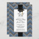 Start off your 2013 graduation party off right with our modern, classy & stylish class of 2013 blue, black & grey chevron graduation party invitation featuring a black grad cap with a gold tassel. Available in our shop in 15 popular school colours. Our Trendy graduation invitation is perfect for a high school graduation or college graduation. Just fill in your information and you're all set to go. Visit us a www.celebrateitgraduations for a large selection of class of 2013 graduation invitations .