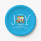 Modern Blue Christmas JOY TO THE WORLD Paper Plate