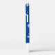 This cute Christmas iPhone 12 case features a trendy winter pattern with white stars and snowflakes on a blue background. Personalize it with a name in the matching handwriting font.