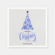 Modern blue ball Christmas tree, black stars, and the words Merry Christmas in chic lettering on a pale grey background, personalize these holiday napkins for any Christmas occasion, your home or give as a hostess gift. MATCHING items in our store.