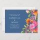 This wedding invitation features a rich blue background with vibrant painterly florals in pink, orange, and coral tones. The colourful botanical artwork paired with refined typography creates a romantic and elevated look for a garden or outdoor celebration. A beautiful choice for couples who love bold, artful wedding stationery. Available printed or as an instant digital download.