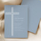 Invite loved ones to celebrate your son’s special day with this modern blue cross confirmation invitation. Featuring a clean white line cross over a soft blue background with subtle vertical striping, this design blends timeless faith symbolism with contemporary elegance.