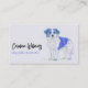 A business card with a modern blue tones drawing of a cute dog. Perfect for a dog walker service or pet sitter.