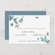 Design features blue eucalyptus branches and leaves and modern type/font. The RSVP card can be easily customized for your event by adding your event details, font style, font size & colour, and wording of your choice by clicking on the 'Personalize' button.