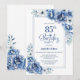 Invite your friends and loved ones with this modern blue floral 85th birthday party invitation. The customizable text area in this invitation template allows you to effortlessly include all the necessary details for your special birthday celebration, including the date, time, venue, and RSVP information. A variety of paper types and corner styles are available for your unique invitations, along with the option to download if you prefer a digital format.
