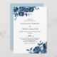 This modern blue floral wedding invitation is perfect for a winter wedding. This elegant hand-painted floral design features blue, dark blue and indigo graceful flowers with green leaves, depicting majestic natural beauty.