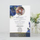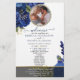 Grab yourself a unique wedding program that you can fully customize to make it special and unique to your wedding. the design comes with a frame where you can put your picture/photo with your man or with your woman, the frame that comes with beads will complement the photo of the couple inside it and will make the card look so elegant. Modern wedding program card with blue and gold accent.