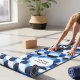 Elevate your daily flow with a touch of retro-modern sophistication. This yoga mat features a dynamic Bauhaus-inspired geometric pattern in a refreshing palette of navy, royal, and sky blue. The clean, semi-circle motifs create a sense of rhythm and balance, perfect for centering your practice.