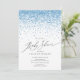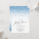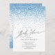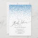 Modern baby shower invitation featuring blue glitter with a contemporary calligraphy font and a coordinating glitter back for an extra special touch.