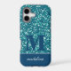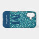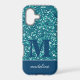 Give your phone a stylish upgrade! This girly phone case features an aqua sparkly glitter background with a navy monogram initial and is personalized with your name.
