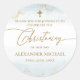 Modern Blue Gold Cross Boy Christening Classic Round Sticker