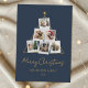 Modern Blue Gold Photo Collage Christmas Holiday Card