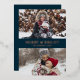 Modern Blue Gold Script Merry Bright Photo Foil Holiday Card