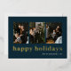 Modern Blue Gold Typography Happy Holidays Photo Foil Holiday Card