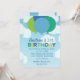 Modern Blue Green Balloons First Birthday Invitation