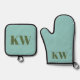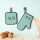 Modern Blue Green Monogram Initials Personalized Oven Mitt & Pot Holder Set
