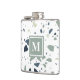 Modern Blue Green Terrazzo Marble Monogram Hip Flask