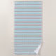 This modern beach towel features a trendy small chevron pattern in blue and grey on a white background.