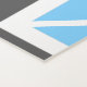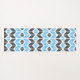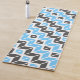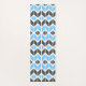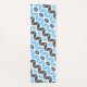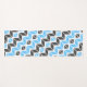 This yoga mat features a colourful geometric herringbone pattern in sky blue, dark grey, and white.