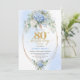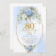 Modern Blue Hydrangea Gold Frame 80th Birthday Invitation