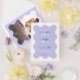 This beautiful wedding invitation is framed by a delicate wave scallop border. It features a tranquil palette inspired by lavender fields, with soothing shades of lavender complemented by soft greens and earthy tones. The playful yet sophisticated fonts dance across the page, blending whimsy with elegance, and selected words highlighted in vibrant blue add a delightful pop of colour. More than just an invitation, it's a prelude to a celebration filled with charm and joy, perfectly suited for couples seeking a mix of fun and sophistication in a design that softly speaks of nature and love.