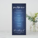 Beautiful deep shades of dark blue create a texture like water on this lakeside wedding dinner menu. Perfect waterfront menus for a reception in the evening by the lake with a water view. Elegant white minimalist script with your details on a gradient that feels like you are swimming underwater at night.