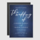 Beautiful deep shades of dark blue create a texture like water on this evening wedding magnetic invitation. Perfect lakeside or waterfront magnet invites for a ceremony by the lake with a water view. Elegant white minimalist script with your details on a gradient that feels like you are swimming underwater.