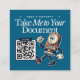 Make a memorable impression with this modern blue notary business card, designed for a professional yet approachable look. The front displays essential contact information in a clean layout, while the back features a playful notary stamp character, a scannable QR code, and the engaging slogan "Take Me to Your Document." Perfect for mobile notaries, legal professionals, and anyone wanting to stand out in a unique way. This vibrant card combines functionality with personality, making it ideal for networking and client interactions.