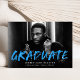 Announce your graduation with our Modern Paint Splatter photo graduation announcements. The design features the graduate's horizontal photo with "Graduate" in bright blue lettering with white paint splatters. Personalize the front of the creative graduation announcements by adding the graduate's name, school name, and graduation year. The back of the announcement features a blue background with white paint splatters. The design is perfect to use for both high school and college graduates.