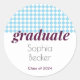 This Modern Blue Pattern Graduation Classic Round Sticker features a blue diamond pattern, symbolic of graduation caps, to create a classic and modern design. Personalize this template by inserting your name and class year to make it your own.