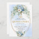 Modern Blue Peony Gold Frame Quinceañera Invite