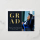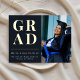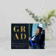 Celebrate your graduate in style with this modern photo graduation announcement card featuring bold blue typography and a sleek black design. Perfect for high school or college graduation announcements with a personalized photo and class year.
