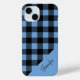 Modern Blue Plaid Check Pattern Name iPhone 15 Case.