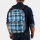 Modern Blue Plaid Monogram Initials Printed Backpack