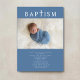Modern Blue Religious Cross Photo Boy Baptism Invitation