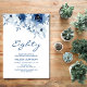 Stunning watercolor blue roses floral arrangement with beautiful greenery birthday invitation card.
