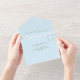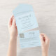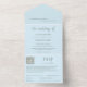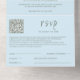 Customizable modern sea glass blue and sage green QR Code All In One Invitation. Includes RSVP with a scannable QR code that you can link to your wedding website. Generate your own unique QR code via the "personalize this template" feature on the product page. Add your URL to the area provided and a brand new QR code will generate on the design just for you.