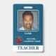 Professional school teacher employee badge designed for schools, colleges and academies. Simply upload your school logo, update school name, teacher's name, title, school contact information in the back and choose a background colour that matches your school colours.