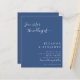 This wedding invitation features a rich blue background with elegant handwritten script and clean minimalist typography. The simple layout creates a timeless and refined look for a modern celebration. A beautiful choice for couples who love classic blue wedding stationery with an elevated feel. ***printed on a budget paper type
